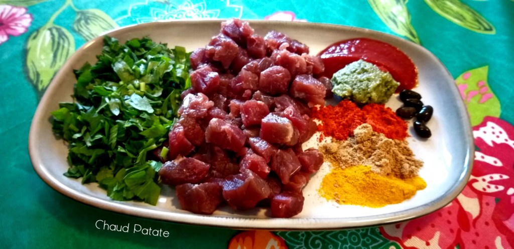 La recette que je vous montre est très pratique à réaliser et effectivement est bien caractéristique de l’intérieur de Bahia (en opposition au littoral de l’état qui incorpore des produits de la mer). On associe cette légumineuse à un autre produit traditionnel, la « carne de sol » ou la viande du soleil. Il s’agit d’une viande de bœuf séchée à froid, histoire de la conserver et pouvoir la transporter vers l’intérieur du pays. La technique ancestrale consistait à saler les pièces de bœuf et les laisser sécher exposées au vent et au soleil. Aujourd’hui on peut la fabriquer maison, ce que je fais souvent ici en France. Pas d’exposition au soleil, il suffit de saler la pièce et la laisser dessécher au frigo pendant 48 heures : d’abord avec couvercle les premières 24 heures, après on ôte le liquide rendu et on laisse encore 24 heures au frigo, mais cette fois-ci sans couvercle pour que le frigo en absorbe l’humidité. Le résultat c’est une viande de couleur foncée, de texture ferme et de goût concentré incroyable.