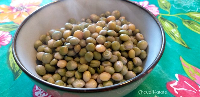 Versez dans ce mélange les pois cuits et égouttés et mélangez pour enrober les légumineuses de cette sauce.