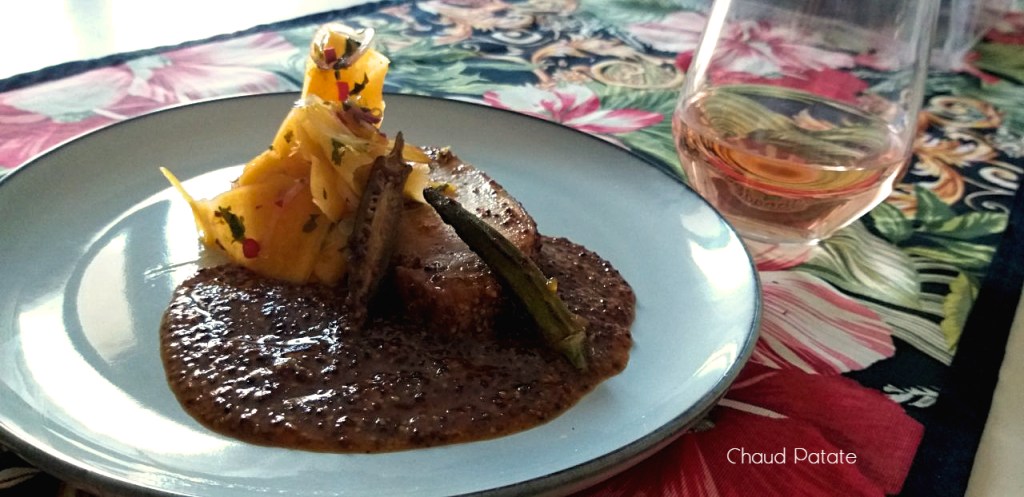 A versão de Rita vai com carne-seca na manteiga de garrafa, com peixe assado ou com espetinho de queijo coalho (sortuda!). A minha foi acompanhando um mignon de porco besuntado de mostarda e decorando uma sopinha de abóbora com maçã. A essência da receita se mantém e inclusive a brasilidade foi garantida graças aos mercadinhos asiáticos e africanos que têm insumos comuns à nossa mesa. Outros ingredientes foram substituídos por equivalentes mais facilmente encontráveis na minha região atual (França metropolitana, departamento Isère), possibilitando aos leitores francófonos reproduzir a receita.