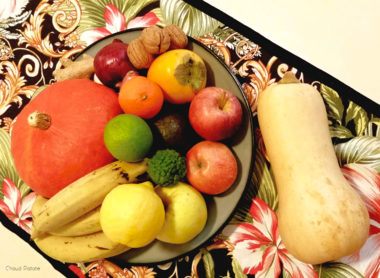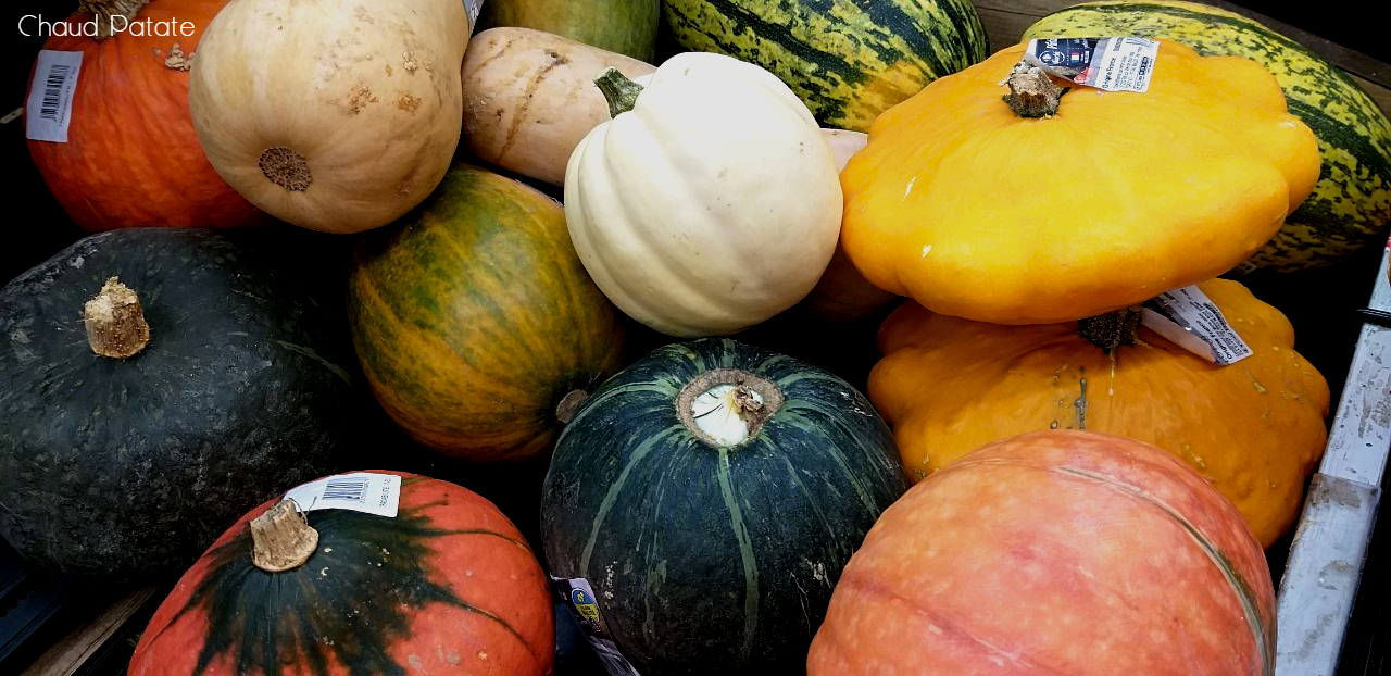 A boa notícia é que a temporada de abóboras está aberta no hemisfério norte e quem não tem cabotiá pode « caçar » com toda outra sorte de cucurbitácea! Entre outubro e fevereiro as berinjelas, abobrinhas e tomates cedem espaço nos tabuleiros das feiras a variedades locais de citrouilles, courges e potirons. No fim de semana me deparei com essa fartura de cores e formatos e trouxe pra casa uma butternut/doubeurre para adaptar uma receita do site Panelinha de Rita Lobo. Lá ela usa uma abóbora de pescoço, rechonchuda embaixo e afunilada em cima, e a variedade francesa copia esse desenho. O pescoço da abóbora, carnudo e desprovido de sementes, é perfeito para obter as fatias finas e uniformes que dão toda a elegância a esse acompanhamento.