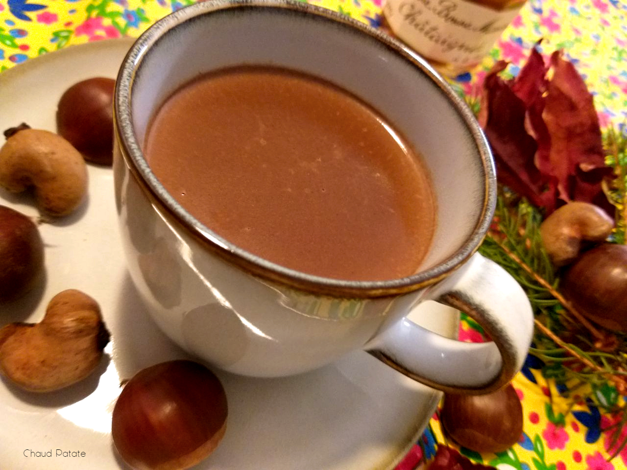 Chocolate quente vegano de castanha de caju e castanha portuguesa