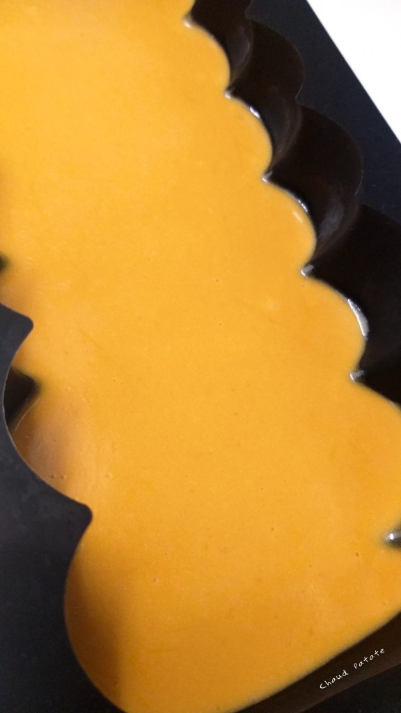 Versez cet appareil directement dans une moule de silicone rectangulaire ou dans une moule d’autre matériel mais dans ce cas couvrez-la avec du film alimentaire pour faciliter le démoulage. Déposez le moule au congélateur pour que le crémeux prenne. Pendant ce temps, passez à la deuxième étape de la recette.