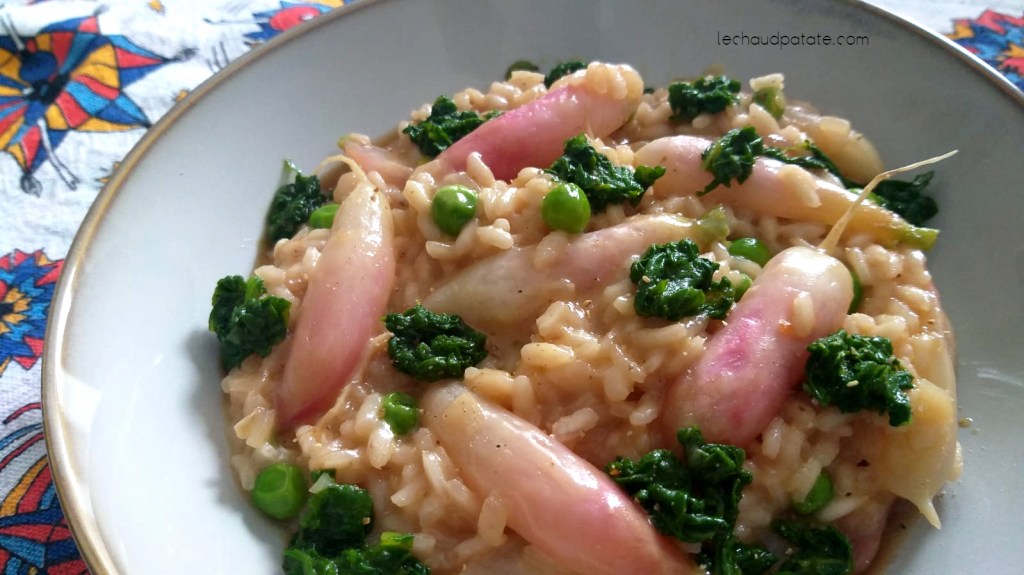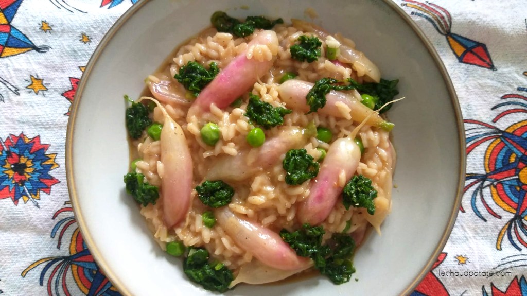 Risotto printanier aux radis, petit pois et fromage de chèvre