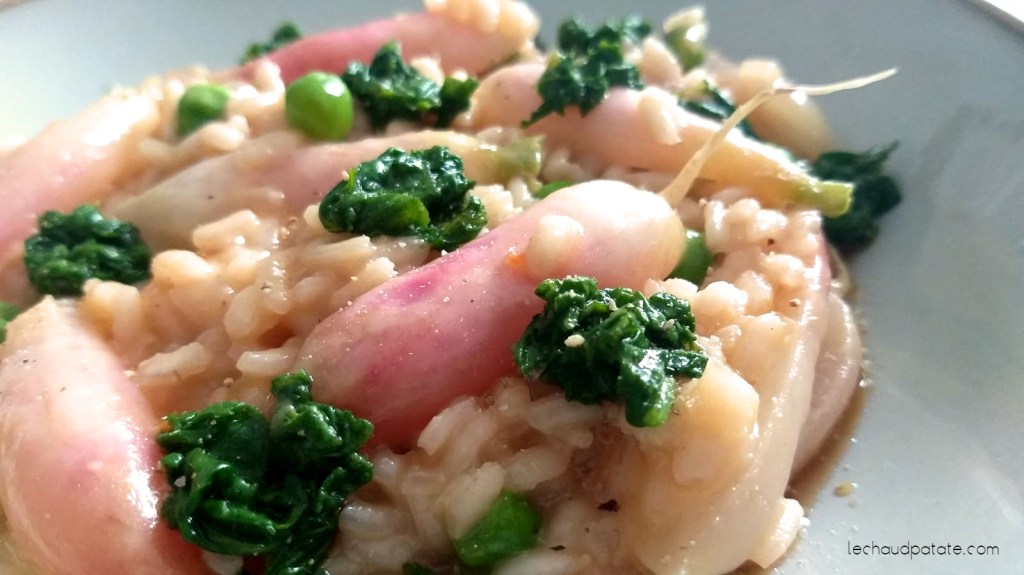 Bien qu’ayant une base à tendance classique avec les petits pois, cette version très originale du risotto met le printemps à l’honneur avec les radis… et le Martini blanc ça change tout hihi !