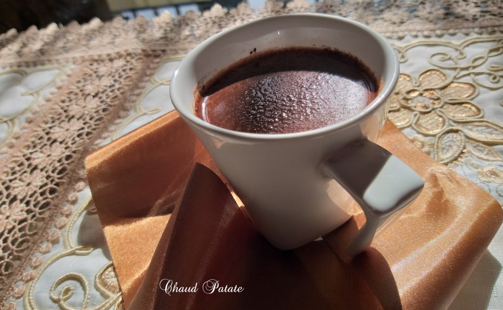 versão em português       Esse chocolate quente é diferente de todos os que você conhece. A ideia de combinar esses ingredientes veio a partir de um restinho de ganache na geladeira, sobra do maravilhoso gravity cake que preparei para o aniversário do esposinho Monsieur Chaud Patate no início do mês. A manhã… Lire la suite Chocolat chaud : cassis, café, kéfir / O melhor chocolate quente do mundo