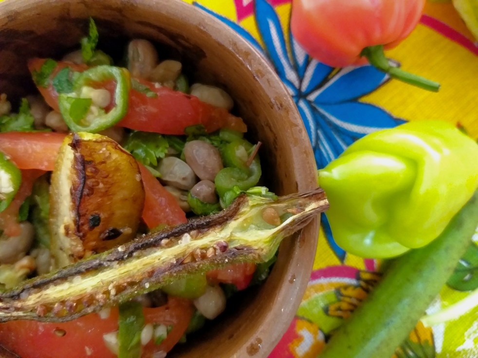 Salade d’haricot frais, gombo et concombre antillais / Salada de feijão verde, quiabo, pimenta de cheiro e maxixe