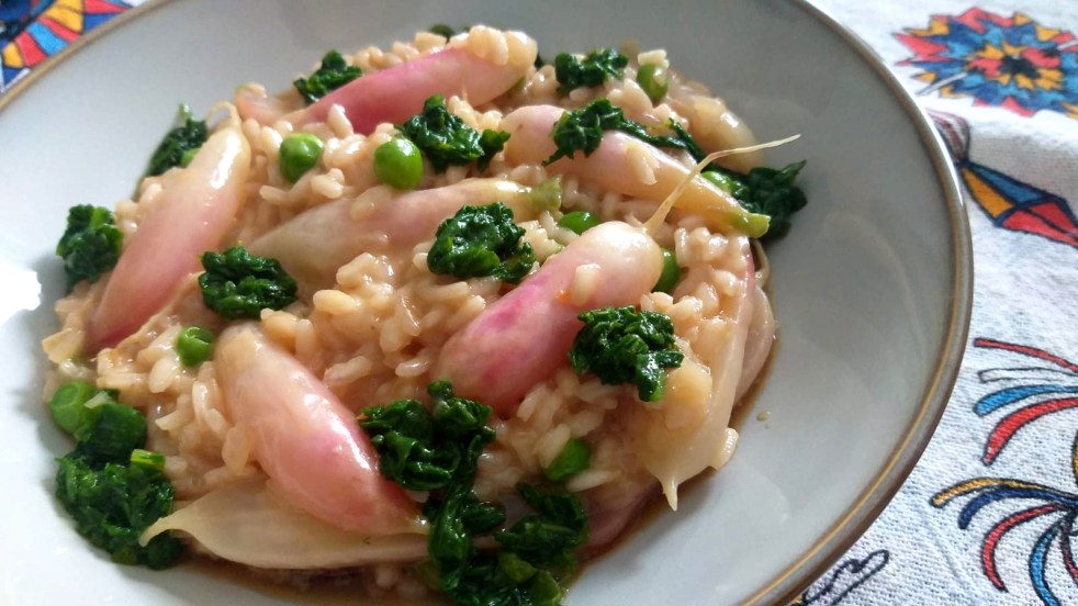 Risoto de primavera: rabanete, ervilha e queijo de cabra