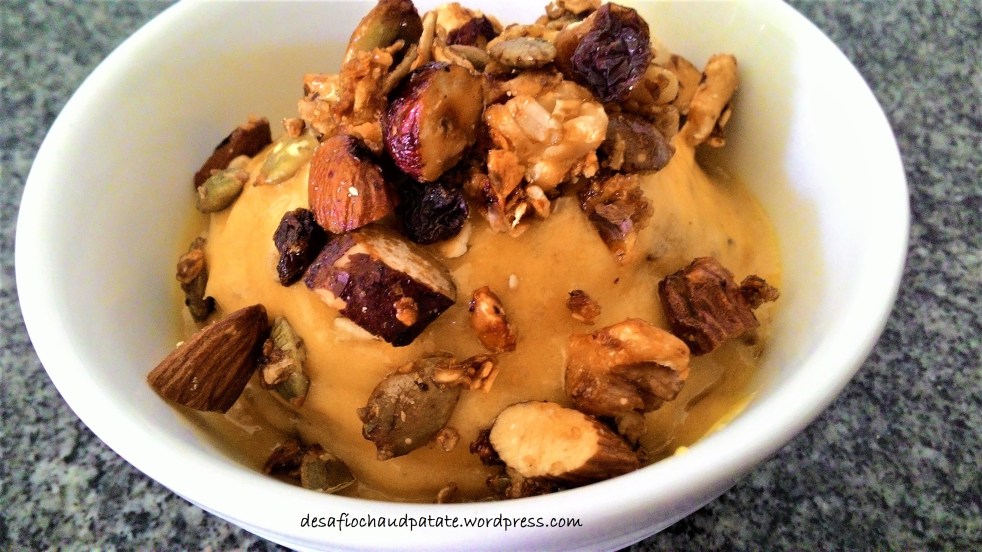 version en français      Oh, les vacances chez les parents ! J’ai passé mon février avec ma famille qui me manque trop pendant toute l’année. Et parmi les plaisirs de revisiter la maison où j’ai grandi il y a toujours cette mémoire des arbres du jardin. Cette fois-ci une belle surprise:… Lire la suite Gelado de manga ubá ou carlota do quintal Sorbet à la mangue du jardin