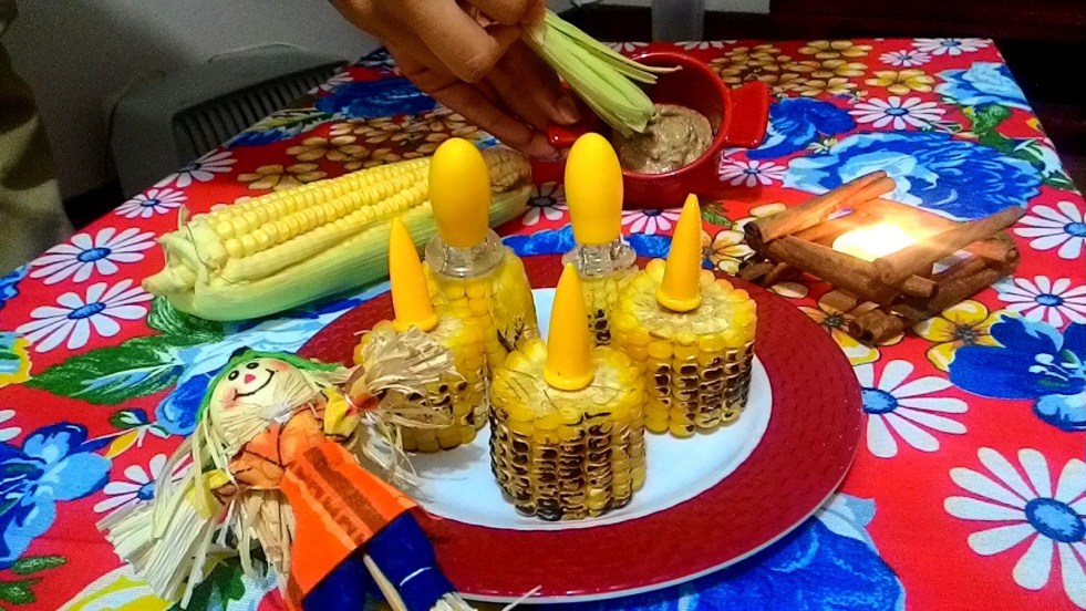 version en français      Ça y est, ce week-end on a fêté le feu de la Saint-Jean et au Brésil cet événement est marqué par plusieurs recettes à base de maïs. En effet, la fête de Saint-Jean au Nord-est du pays célèbre la cueillette du maïs grâce aux pluies qui malheureusement ne… Lire la suite Brochette de maïs au beurre assaisonné pour la fête du Feu de la Saint-Jean