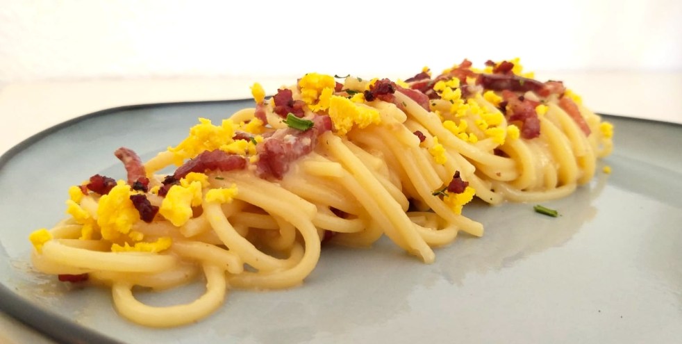 version en français      Aujourd’hui je vous propose une appropriation de la classique pâte carbonara italienne à la mode savoyarde. C’est-à-dire qu’après 8 ans loin, là je suis de retour chez Rhône-Alpes et certains produits régionaux que j’affectionne sont tout à fait de retour dans ma table. Même si l’hiver est fini,… Lire la suite Ma carbonara au reblochon / Espaguete carbonara ao reblochon