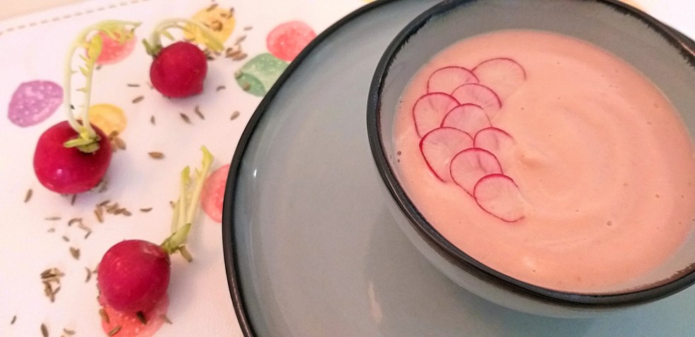 Qui aura dit été aura dit radis ! ^.^ Ce 3 juillet il est encore à table pour la ronde 63 du jeu « Recettes autour d’un ingrédient » dont Samar (Mes inspirations culinaires) et Soulef (Amour de cuisine) sont les créatrices. Il n’y a pas longtemps, ces gentilles blogueuses m’ont invité à coordonner l’édition 55 et à l’occasion j’ai choisi «… Lire la suite Vélouté de radis au fenouil