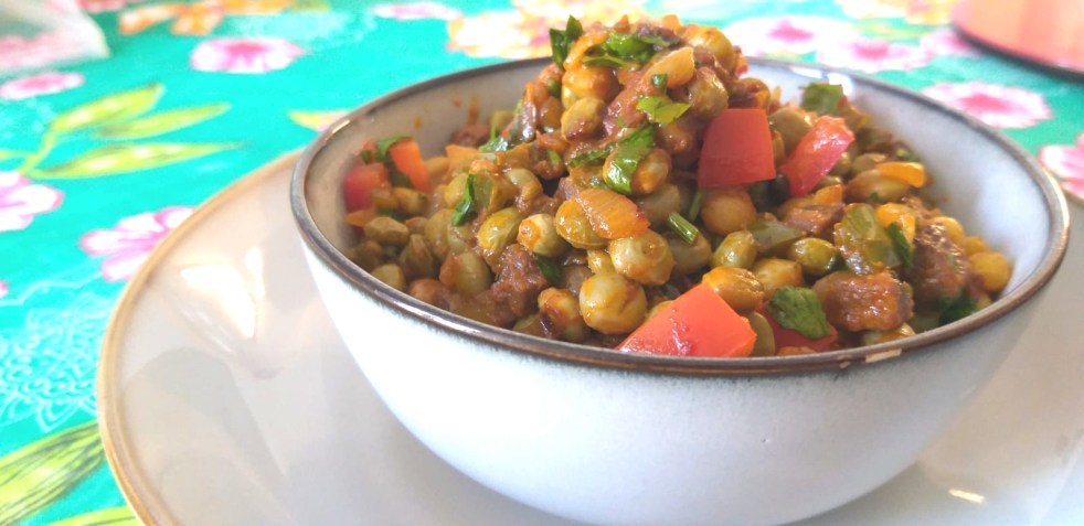 Je m’amusais dans les couloirs d’un magasin de produits asiatiques, où on arrive à trouver parfois des ingrédients africains aussi, et quelle surprise quand j’ai identifié entre les surgelés un paquet qui m’a transporté directement à l’intérieur de Bahia, mon terroir. Sous l’appellation en français de « pois d’Angole » j’ai reconnu ce qu’au Brésil on connaît… Lire la suite Pois d’Angole à la viande séchée « carne de sol »