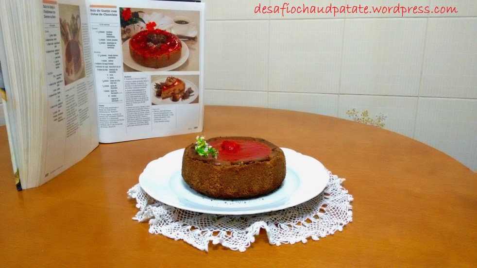 version en français en bas de page           versão em português      Lá pelos meus doze anos, Mainha viu que eu me interessava cada vez mais pela cozinha e me presenteou com um livro de quase quinhentas páginas que representavam, para mim, incontáveis possibilidades de diversão e descoberta. Muito… Lire la suite Cheesecake de chocolate com calda crua de morango e manjericão // Cheesecake chocolat-fraise-basilic