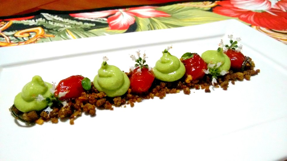 Creme de confeiteiro de manjericão e tomatinhos abaunilhados ao mel e alecrim Crème patissière au basilic et ses tomates vanillées au miel et au romarin
