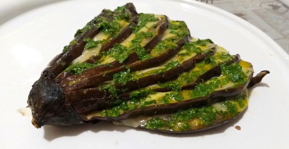 clique aqui para ler a versão em português           version en français      Inspiré par la recette d’éventail d’aubergine tomate mozzarela de Martine du blog Kilomètre-0, dont la philosophie c’est de privilégier le local et le saisonnier en cuisine, je présente mon éventail à moi. Pour ma version du… Lire la suite Éventail d’aubergine et raclette