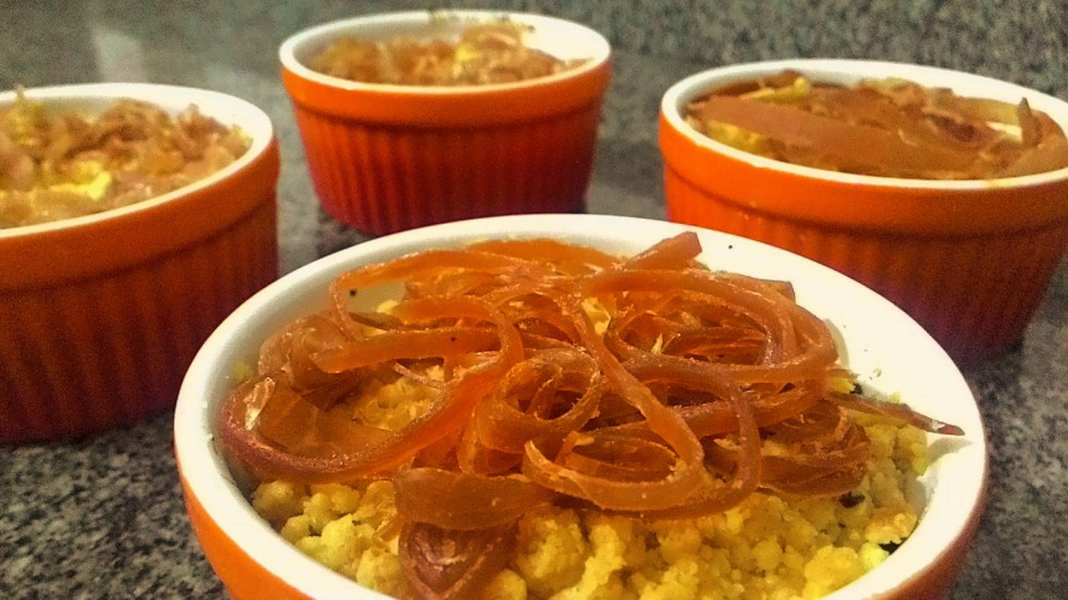 Crumble à la purée de chou rouge caramélisé à l’orange / Crumble de purê de repolho roxo caramelizado com laranja
